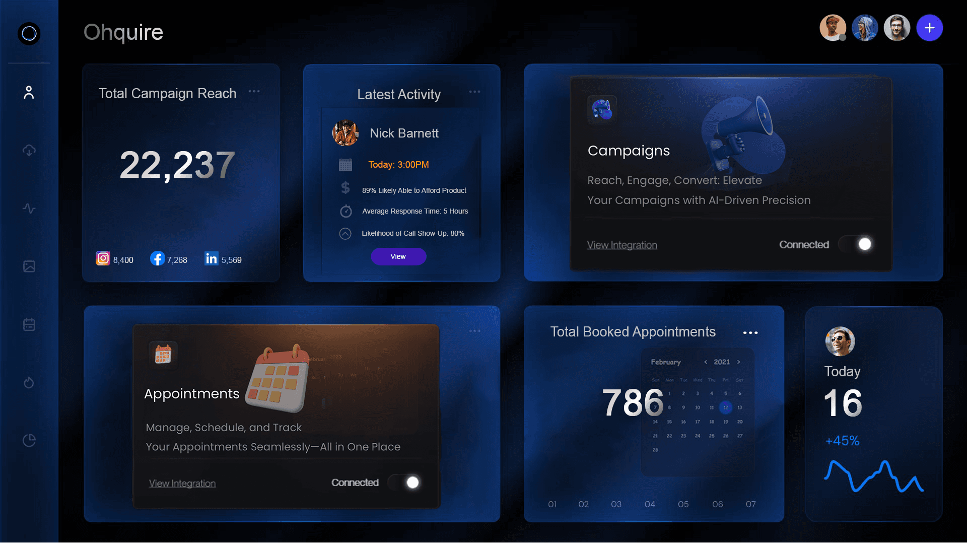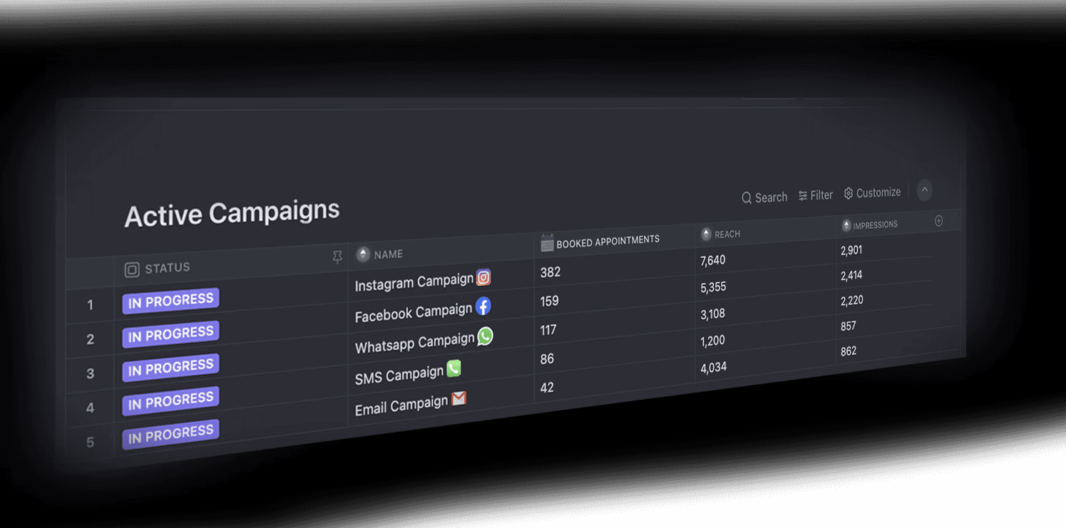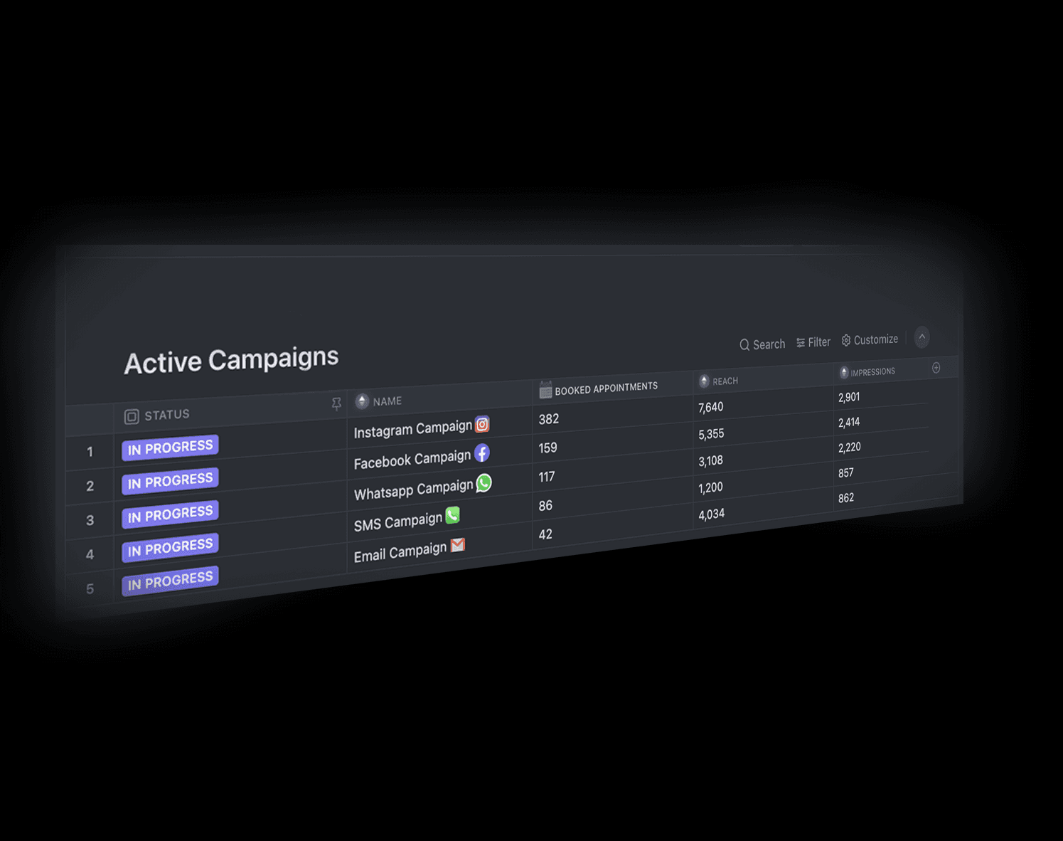 Centralised dashboard for managing campaigns, appointments, messages, and more.